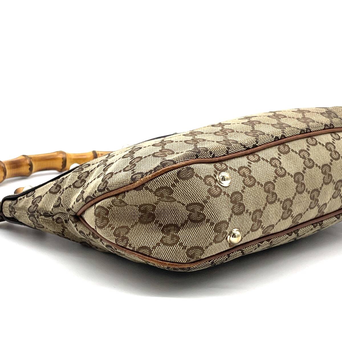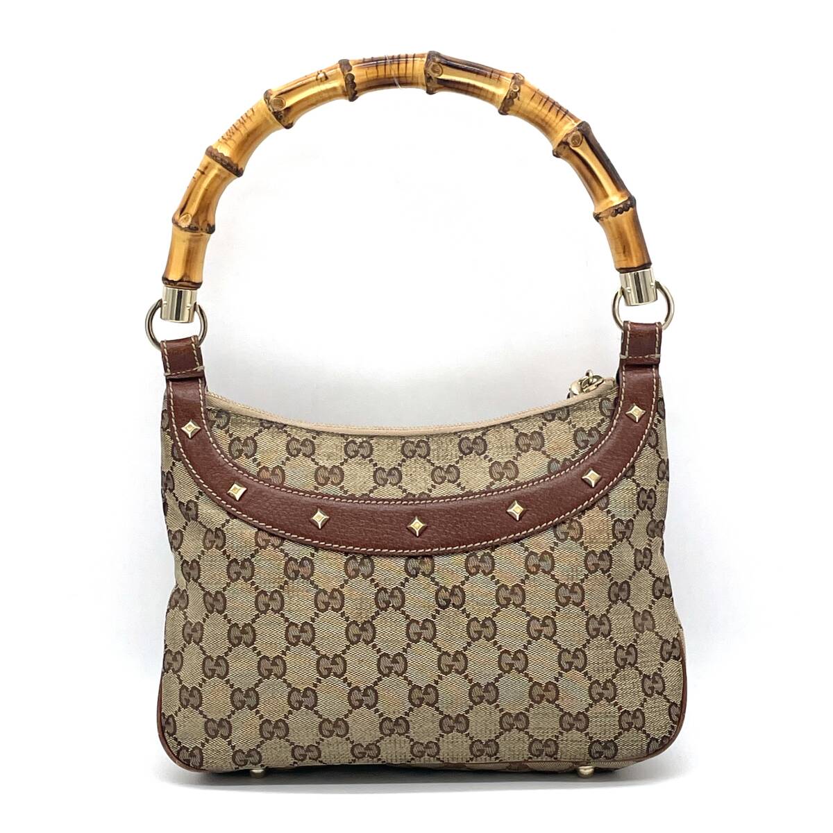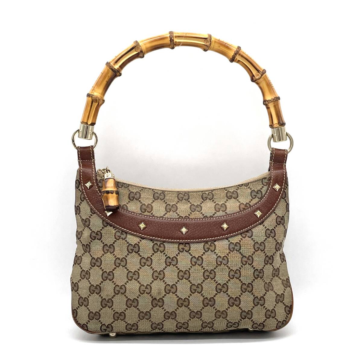 1円 GUCCI グッチ GGキャンバス バンブーハンドル ハンドバッグ ショルダーバッグ ワンショルダー ブラウン 137378