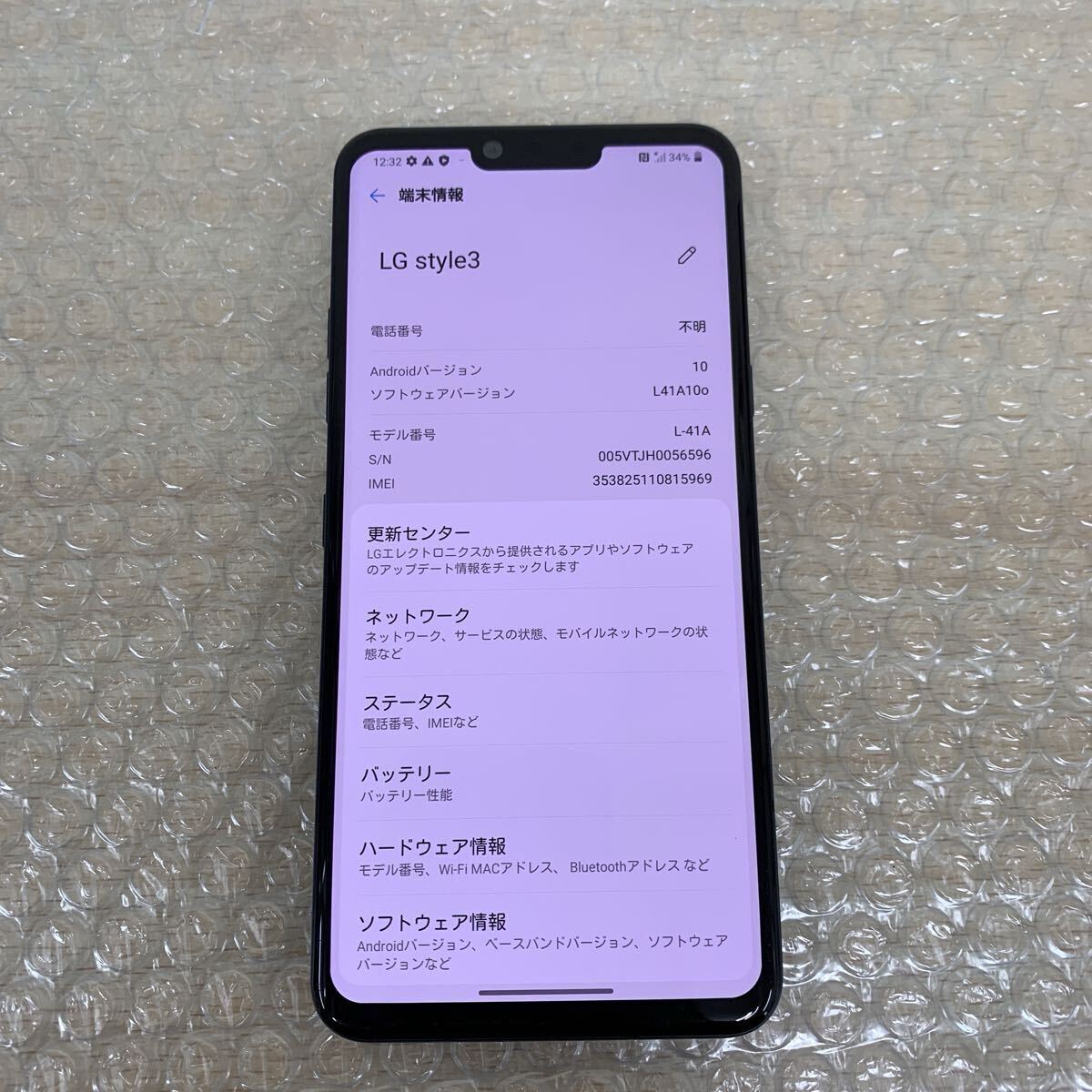 中古品 スマートフォン LG style3 64GB L-41A docomo ブラック Android10 ドコモ:判定◯ スマホ・携帯電話