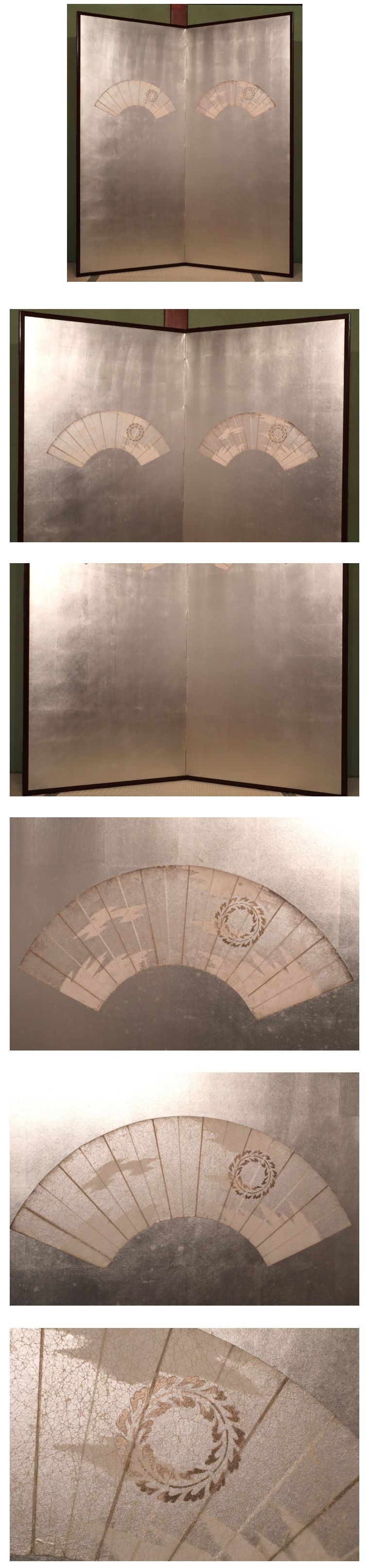 銀地扇面貼り合わせ 屏風 2曲片双 #253204