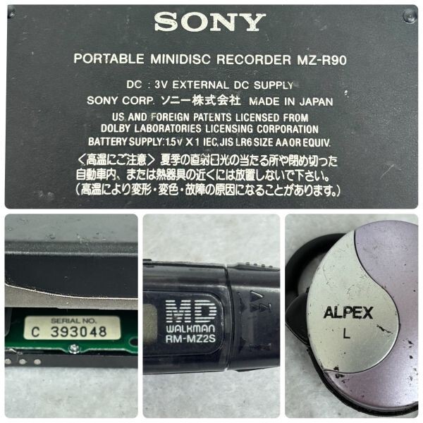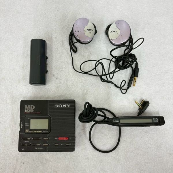 L205-O35-3883◎ SONY ソニー MD WALKMAN MDウォークマン MZ-R90 黒 オーディオ機器 リモコン/イヤホン/電池ケース付き 音出しOK OA