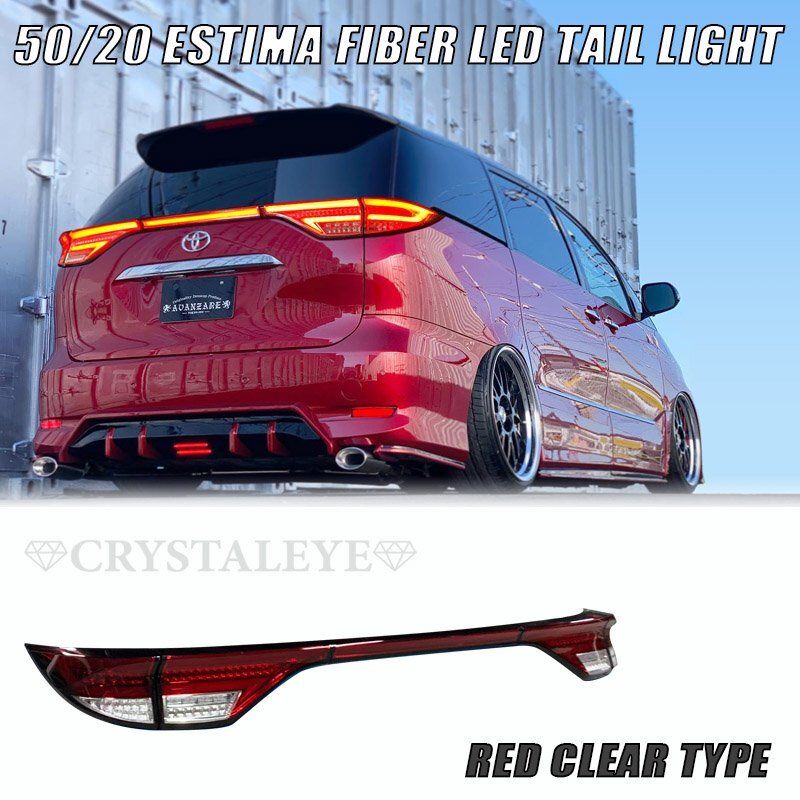 新品未使用1円~ 50系/20系 エスティマ 前期/中期/後期 ファイバーLEDテールランプ 新品 5ピースセット レッドクリアー クリスタルアイ