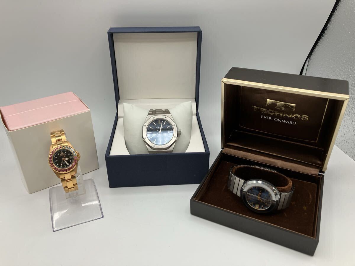 【H944-i】pinky wolman Technos Borazon Ⅱ deluxe FEICE FM019 Black 腕時計 3点 まとめ メンズ レディース 自動巻き クォーツ