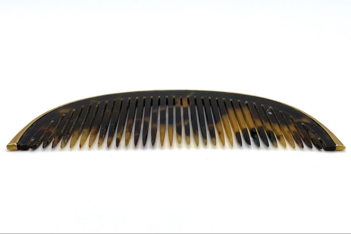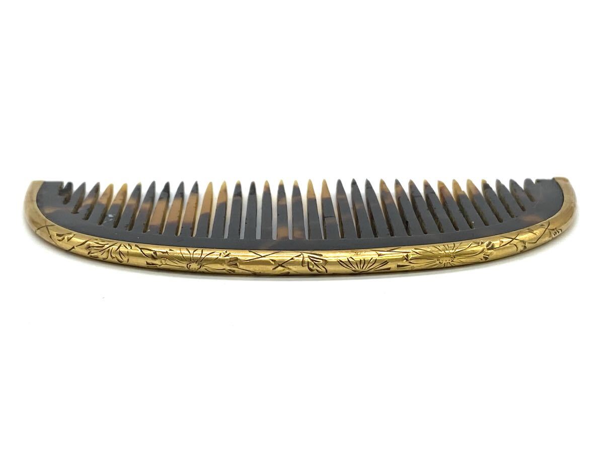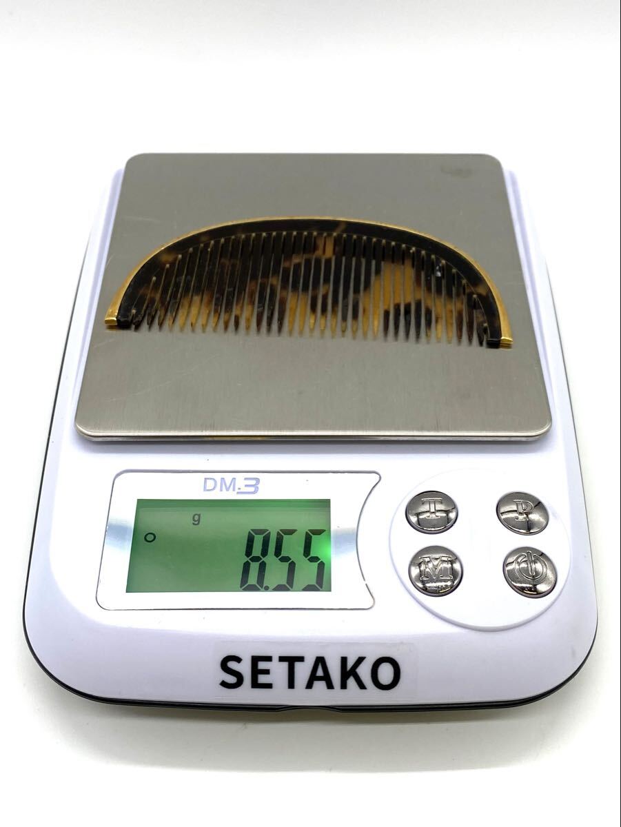 【11白1】べっ甲 ヘアコーム 櫛 くし 工芸品 民芸品 コレクション 金色 ゴールドカラー べっ甲柄 サイズ 9cm×4cm 重さ8.55g