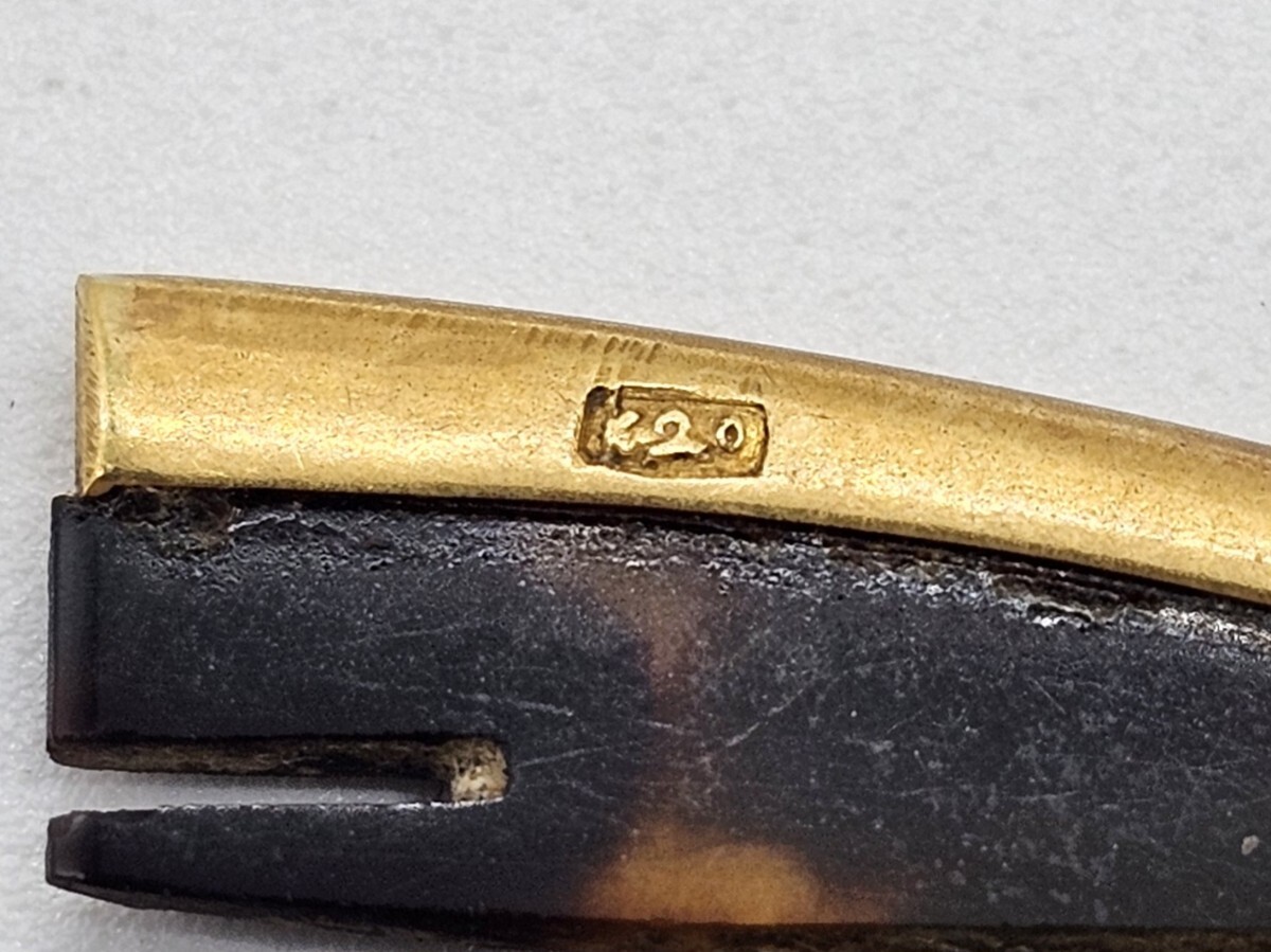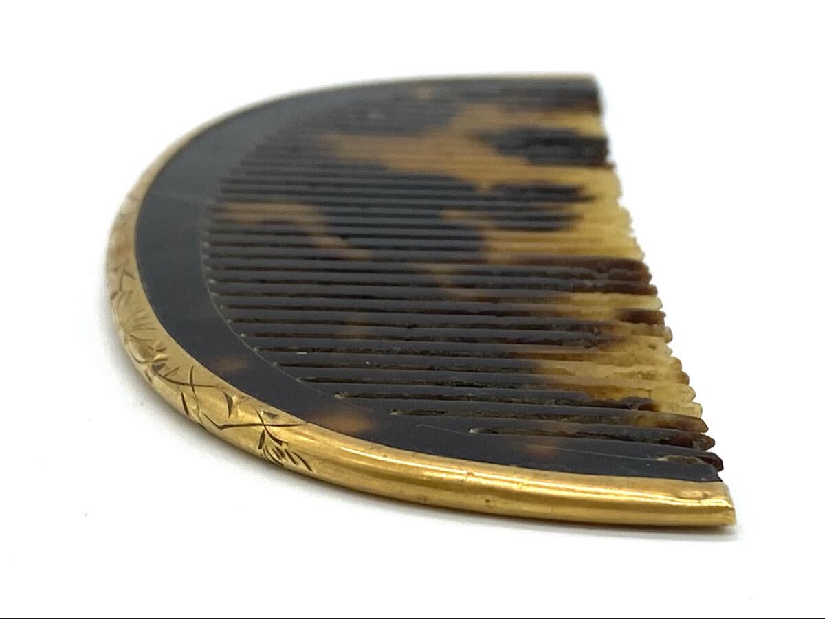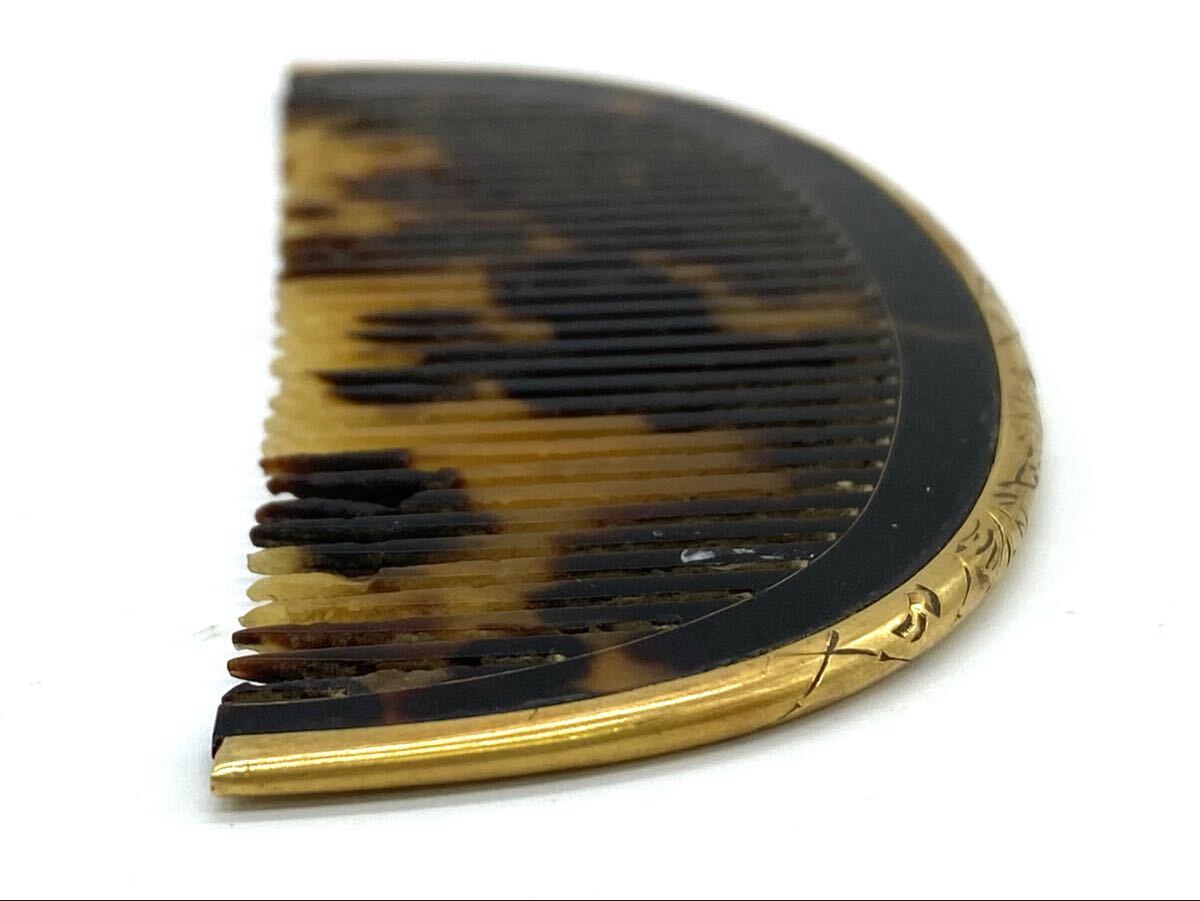【11白1】べっ甲 ヘアコーム 櫛 くし 工芸品 民芸品 コレクション 金色 ゴールドカラー べっ甲柄 サイズ 9cm×4cm 重さ8.55g