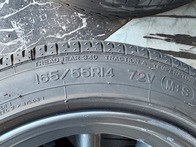 RS ワタナベ 6.5J-14 A 2本 6J-14 B 2本 PCD114.3 ダークグレー 165/55R14 バリ山 4本セット 中古
