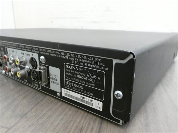 500GB☆11年☆ソニー/SONY☆HDD/BDレコーダー☆BDZ-AT700☆リモコン付☆2番組同時録画☆3D対応機 管CX37867