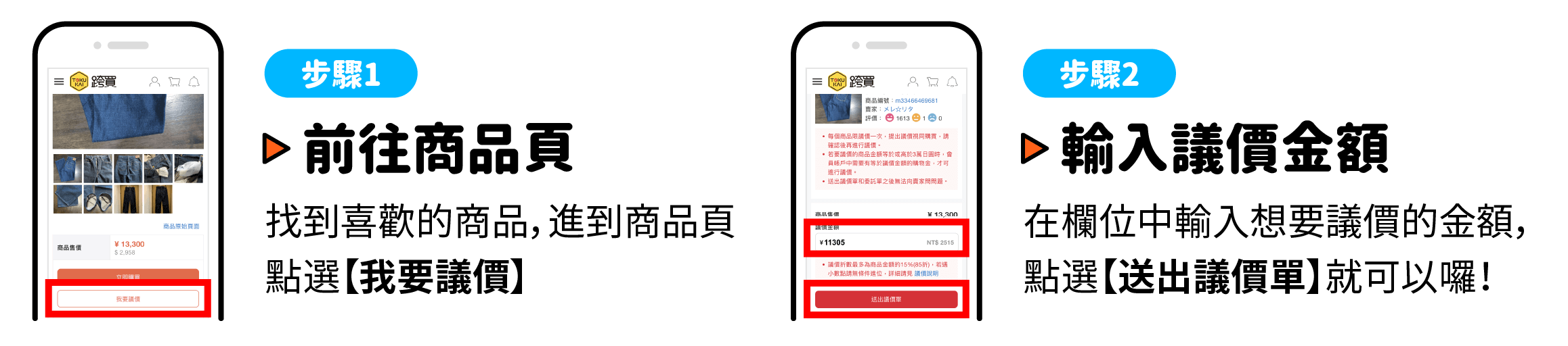 提出議價單或購買前