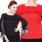 ダンス衣装 カットソー【黒】【赤】【スパンコール】【社交ダンス・ソシアル・サルサ・タンゴ・ベリーダンス・バーレスク・ジャズ・各種ダンス】【アタリマ】