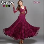 モダンダンス フレアスカート レース シフォン ドレス ワルツ 社交ダンス衣装 レディース 練習用 競技用 快適な動き 長袖