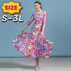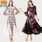 大人用 モダンダンスドレス ワンピース 花 社交ダンス スクエアダンス ステージ衣装 レディース 快適な動き 練習用ドレス 競技ダンスドレス 半袖