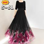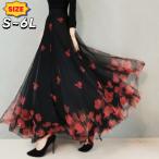 フレアスカート 社交ダンス ロングスカート 大きいサイズ シェイプアップ ハイウエスト 炎のバラ 花柄 ハーフスカート 快適な動き 黒