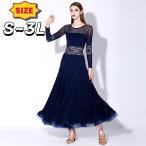ワンピース 競技ダンスドレス ネイビーブルー ロングスリーブ ワルツ 練習用衣装 社交ダンス衣装 レディース 快適な動き