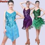 スパンコールキャミソールワンピース フリンジドレス ラテンダンスドレス ステージ衣装 ダンスパフォーマンスドレス 競技 チーム演出用
