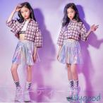 キッズ ダンス衣装 ヒップホップ 子供 トップス シャツ スカート チェック柄 キラキラ チア チアダンス ジャズダンス 体操服 練習着 応援団