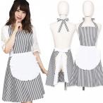 コスプレ メイド フリルストライプエプロン ブラック ブラック ウェイトレス 制服 可愛い 衣装 コスチューム ハロウィン 仮装 セクシー アキバ ゴスロリ