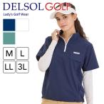 7903 スタンドカラー半袖ハーフジッププルオーバー M/L/LL/3L レディースゴルフウェア