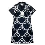 【新品】EFFICACE BLANC エフィカスブラン 半袖ポロワンピース チェーン柄 ブラック系 M ゴルフウェア レディース