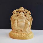 仏像木彫り布袋様 小さな 置物 柘植の木 両面彫刻 七福神 布袋 様 金運 お守り(高さ8cm×巾6.5cm×奥行5cm)