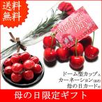 さくらんぼ サクランボ 佐藤錦 または 高砂 造花カーネーション カード付 オリジナル限定ギフト 送料無料 一部地域を除く