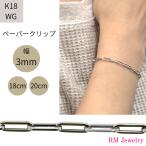 18金 ホワイトゴールド ペーパークリップ チェーン ブレスレット 幅3mm 18cm 20cm K18 WG 角アズキ 中空 リンク メンズ RMジュエリー