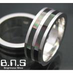 平打ち2ラインシェルリングM ブラック黒 シルバー925