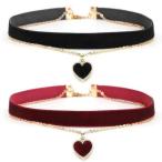 チョーカー ショートネックレス レディース ハート チャーム 二重 黒 赤 首飾り 韓国アクセ シンプル 可愛い おしゃれ
