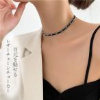 チョーカー ショートネックレス レディース シルバー レザー チェーン ネックレス ブラック 大人 おしゃれ