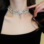 レディース チョーカー ショート ネックレス ペンダント 人工 パール 真珠 クリスタル 宝石 水晶 大人 首飾り パーティー 装飾 鎖骨 可愛い