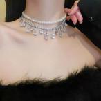 レディース チョーカー ショート ネックレス ペンダント 人工 パール 真珠 宝石 水晶 クリスタル 大人 パーティー おしゃれ 装飾 鎖骨 可愛い