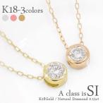 一粒ダイヤモンド ネックレス ペンダント フクリン 伏せ込み ソリティア ダイヤ 0.15ct k18ゴールド 18金 レディース