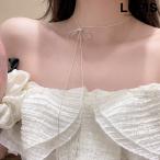 ネックレス レディース スライド式 ラリエット ロングネックレス リボン スネークチェーン シンプル ガーリー 大人っぽ 韓国 ルピス 爆買 母の日