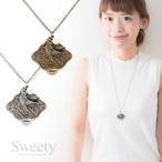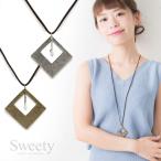 アンティークスクエアプレート革紐ネックレス 全2色