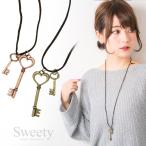 アンティークWキー革ひもネックレス ペンダント 全2色