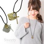 アンティーククロス&メッセージプレート 革紐ロングネックレス ペンダント 全2色