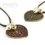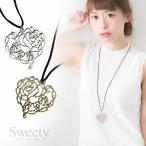 すかしハート革ひもロングネックレス 全2色