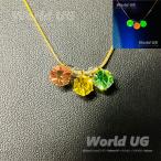ウランガラス&カドミウムガラス 赤黄緑ラスタカラー 6mmルース ネックレス サージカルステンレス+18Kメッキ 1mm幅チェーン
