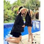 水野佐彩さんコラボ ラッシュガード レディース 3点セット 長袖 40代 50代 フリル 水着 日除け ドット S208送料無料
