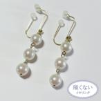 痛くないイヤリング パール3個つなぎイヤリング ピナチョコ