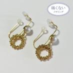 痛くないイヤリング コットンパール クリスタル ゴールド ピナチョコ