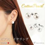コットンパール イヤリング ピアス チタン 金属アレルギー対応 ホワイト キスカ パール 軽い カジュアル ケース