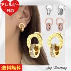 ピアス レディース 可愛い 2連 リングピアス 金属アレルギー対応 キラキラ キュービックジルコニア 医療用ステンレス
