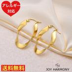 ピアス レディース 揺れる ツイストフープピアス 金属アレルギー対応 可愛い ゴールド