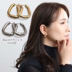 ステンレス スクエアピアス 角丸 フープピアス 四角 メタル 大きめ 定番 人気 ゴールド 18KGP シルバー つやつや デイリー レディース 金属アレルギー対応