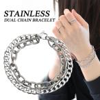 ステンレス チェーン ブレスレット ダブルチェーン あずき 喜平 チェーン シルバー 銀色 デュアルチェーン 小豆 金属 アレルギー フリー 18cm 爆買
