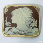 女性 横顔 左 スクエア 樹脂カメオ 小鳥 ブローチ ペンダントトップ 兼用 55.0×45.0mm アンティーク調 ◇B-0090