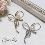 【ゆうパケット送料無料】ブローチ/リボン 曲線ライン 大粒パール 上品華やか メタル 大人コーデ br109☆ゴールド/シルバー セレモニー 卒業式 入学式