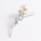 【ゆうパケット送料無料】ブローチ/トルネード 大粒パール&らせん状ラインストーン br15☆シルバー×オフホワイト入学式