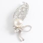 【ゆうパケット送料無料】ブローチ/透かしリーフ パール&ラインストーン br17☆シルバー×オフホワイト 卒業式 入学式