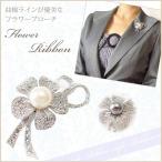 【ゆうパケット送料無料】ブローチ/煌めきパール&ラインストーン 花 リボンブローチ br2☆オフホワイト/グレー セレモニー 卒業式 入学式