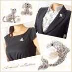 【ゆうパケット送料250円】ブローチ/パール&きらきらラインストーン キュート 動物シリーズ br8☆猫/犬/イルカ シルバー